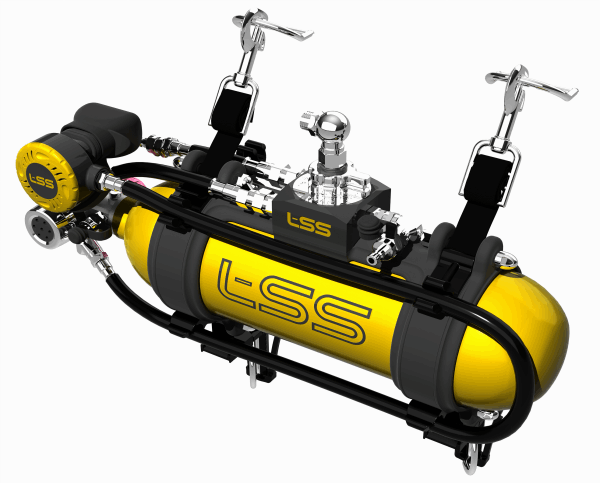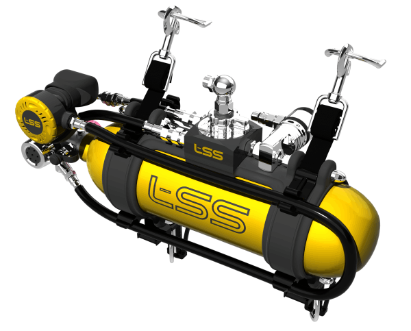 The LSS Umbilical Life Support System is “ …… a complete, rapidly deployable , 4 person commercial dive system, that can fly as regular luggage on a commercial airline …….or be transported by a single person in their family car…..”