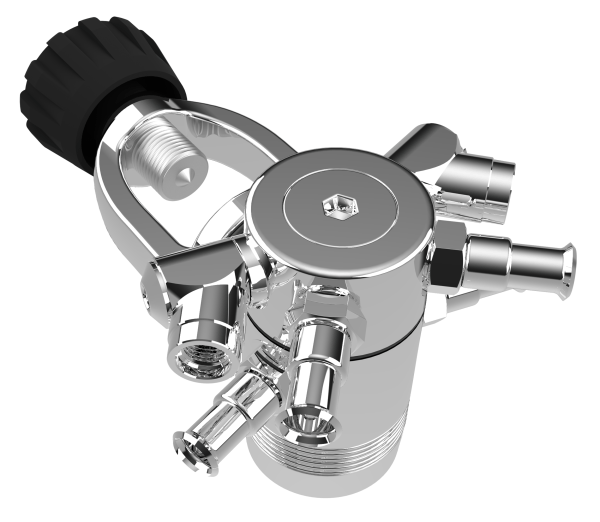 (Subsea) RegPak 2 is a one-of-kind integrated 1st stage regulator & tank valve. It connects the Gas Block on the LSS Carbon 24cft (4500 psi) redundant air PonyPak to provide independent bailout for a Scuba diver, and tertiary bailout for a SSA diver.